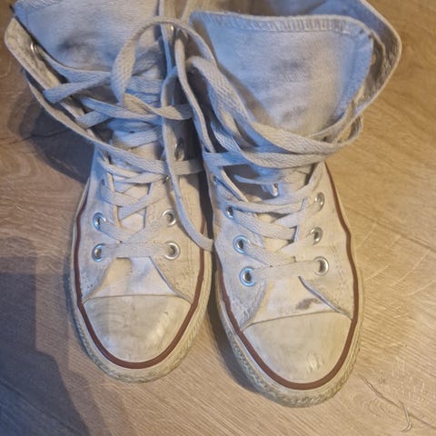 Hvite Converse-sko i str. 36, kun brukt en dag, selges da de ble for små.