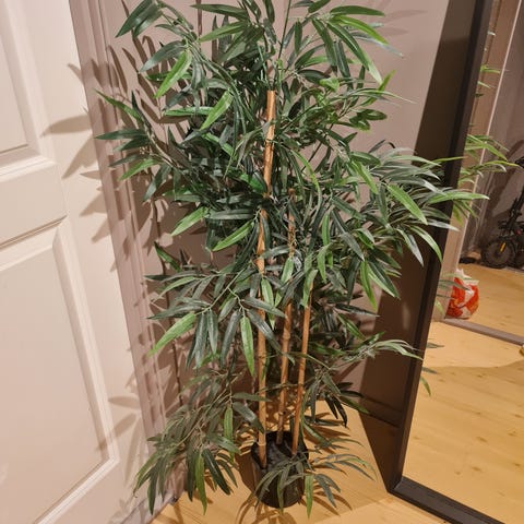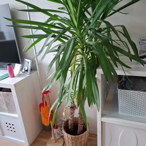 Yucca Palme stueplante med grønne, spisse blader. Høyde ca. 2,25 meter. Bredde ca. 1,10 meter på det bredeste. Egnet for innendørs bruk i hjem eller kontor. Krever moderat lys og regelmessig vanning. Den kommer med selvvanningspotte. Dersom en ønsker å kjøpe planten uten potte kan prisen reduseres til kr. 600,