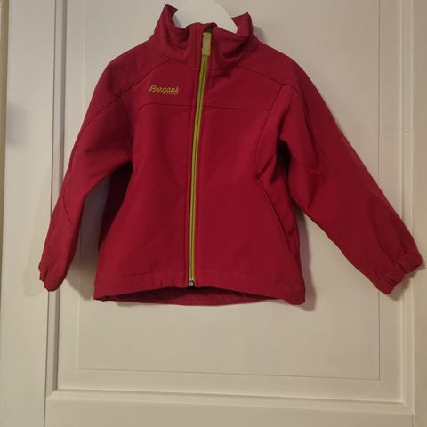 Fin softshell-jakke fra Bergans i str. 92 selges. Noen små flekker foran på høyre side, men ikke veldig synlig. Fortsatt en veldig brukssensor jakke.