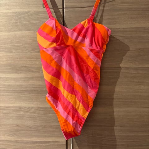Ny med tags og hygieneklistremerke. Kjøpt på Høyer. Herlige farger #regnbue #badedrakt #stripete #fargrstripete