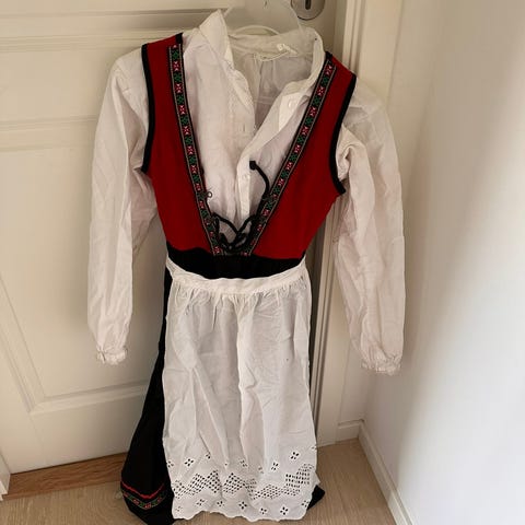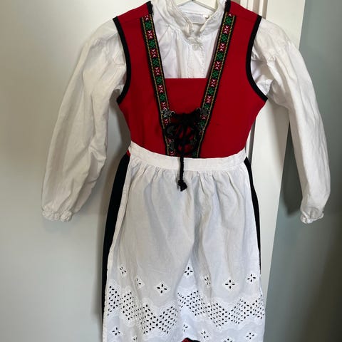 Veldig pent brukt, ingen synlige flekker eller slitasje. Følger med skjorte i str 116, også fra Rosenberg. Har en skjorte i 122 også, om det er av interesse.