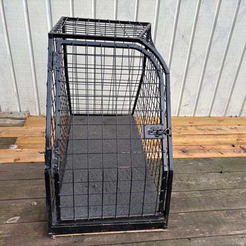 Håndlaget som nytt, solid hundebur . Lengde 80 cm, Høyde 40 cm og Bredde 50 cm. Pris kan diskuteres