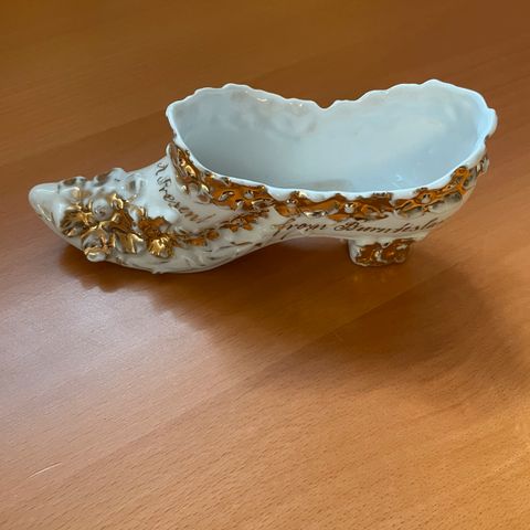 Dekorativ gammel porselens støvel med håndmalte blomster. Hel og fin. Høyde 13,5cm. Samleobjekt.