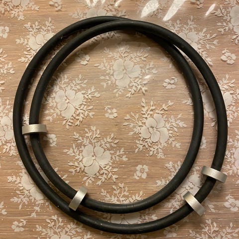 Unikt halssmykke i gummi med fine detaljer i grønn-turkis og metall. Merket Bliss