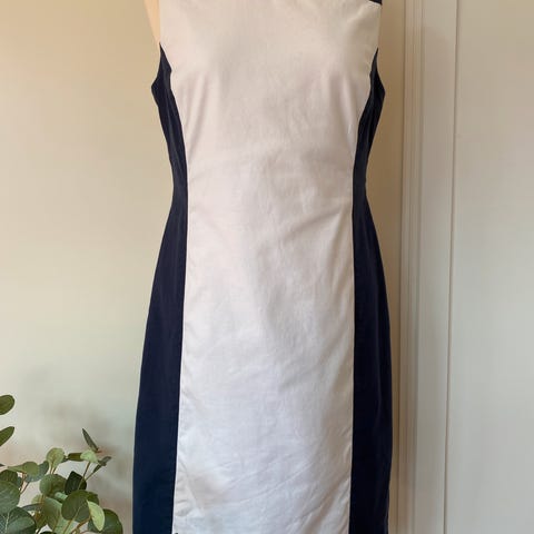 Tommy Hilfiger blå blått mørkeblå marineblå maritimt marimt einsfarga bomull stretch band pynteband raud kvit blå 17. mai kjole fine snitt basis kapsel kjole midi midikjole mini minikjole basisplagg kapselplagg baseplagg selskapskjole sommarkjole vårkjole haustkjole selskapskjole festkjole einsfarga vår sommar haust vårklede sommarklede haustklede M naturleg materiale amerikansk design eksklusiv eksklusivt klassisk dame jente ungdom