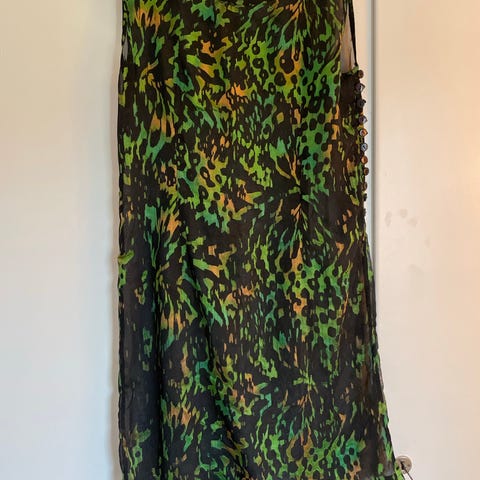 Spesiell og vakker kjole med mønstertrykk i lys lilla og brun