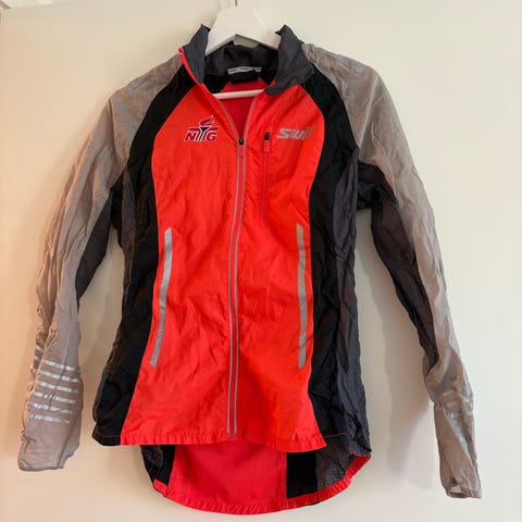 Lite brukt jakke til dame fra Swix i størrelse S, brukt 4-5 ganger. Passer meg som vanligvis bruker XS/S godt. Egner seg godt til ski, løping og andre aktiviteter. Fargen er som vist på bildene, rød og navy. Kan hentes/leveres nær Hønefoss etter avtale. All annen frakt betales av deg som kjøper. Sender gjerne med helt hjem, posten eller postnord etter ditt ønske. Fiks ferdig er også supert