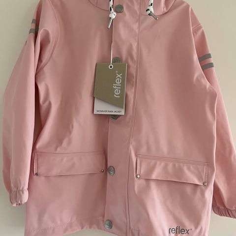 Ny og ubrukt regnjakke fra Reflex selges. Modellen heter Skomvær og fargen er rosa. Størrelse 9 år.