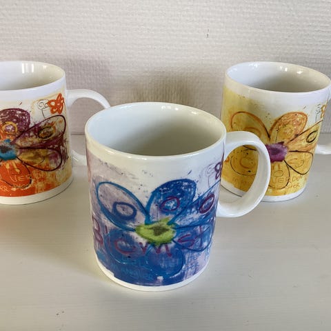Pent brukte krus og en skål fra Aida/ Paul Pava selges rimelig. Svært pen glasur og ingen skader. Skålen er 16,5 vm i diameter og 7,2 cm høy. Krusene er 8,4 cm høye og 6,5 cm i diameter.