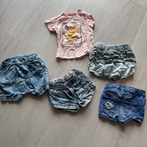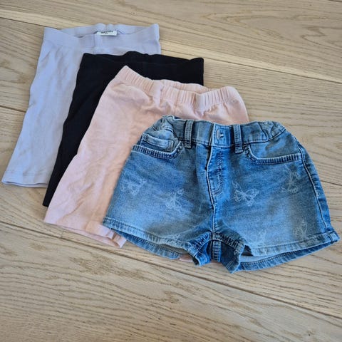 To fin-fine justerbare shortser i størrelse 104. Fra H&M. En i lyserosa, og en i dongerifarge med sløyfer.