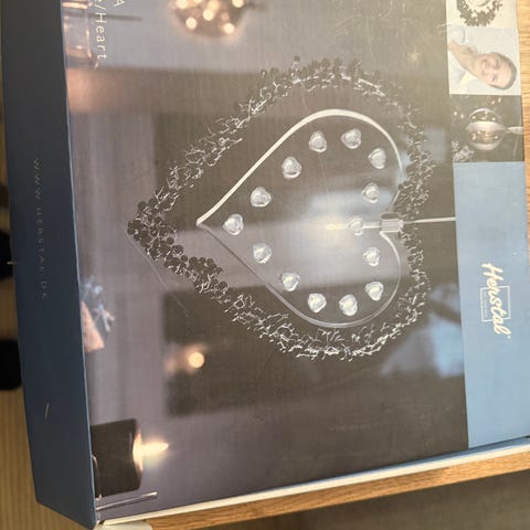 Herstal design lysende juletre ., metal og akryl 14cm. Rutete pynte sløyfe .5m ledning ,med transformator.Ikke vært i bruk .