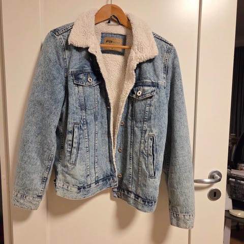 Jeansene er brukt en del ganger og er litt slitt.