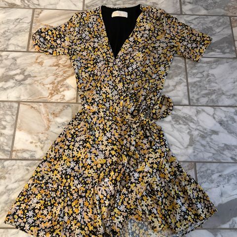 Kjolen har glidelås i siden, og drapering foran, som gir et flatterende uttrykk.