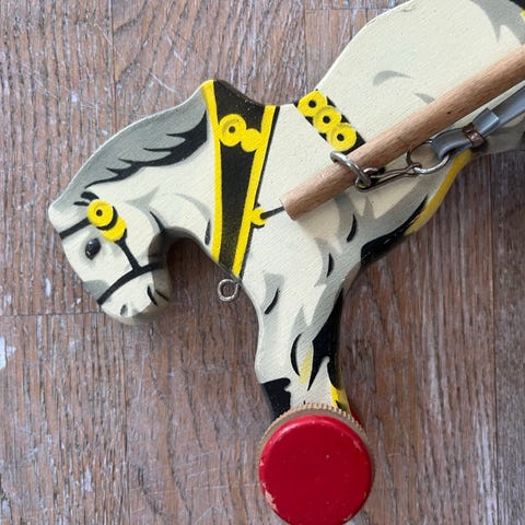 Fin, gammel leke Hest i tre.
