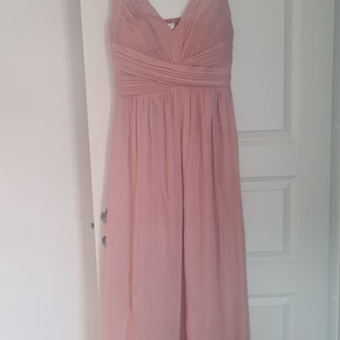 Nydelig selskapskjole i en dus lysrosa farge str M, brukt ved to anledninger. God kvalitet. 600 kr +frakt. Billigste frakt er postnord til 69 kr.