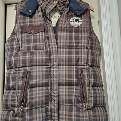 Flott vest fra Jean Paul str . L , brukt få ganger .Kan sendes men ikke med Fiks ferdig .