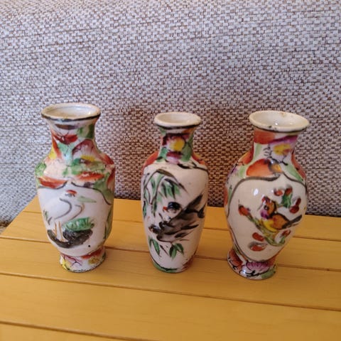 Den japanske er ca 6cm høy. Diam. 8 cm på toppen.