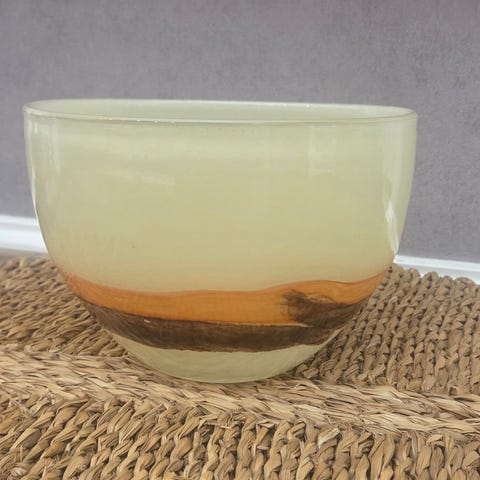 Stor og flott bolle i kunstglass, umerket. Hel og fin, noe bruksmerker på undersiden, se bilder.