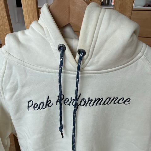 Enkel hoodie uten zip med logo både foran og bak på genseren.