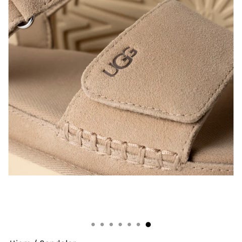 UGG Espadrille sandaler i blå semsket og beige skinn. Behagelig passform. Kilehel ca 8 cm høy
