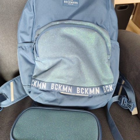 Passer fra ca 2 eller 3 klasse. Høyde rygg 46× bredde rygg (bak) ca 30 cm
