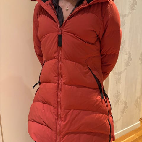 Tynn og lett dunjakke, fin innsvinget fasong, lite brukt. Passet jente 15-16 år.