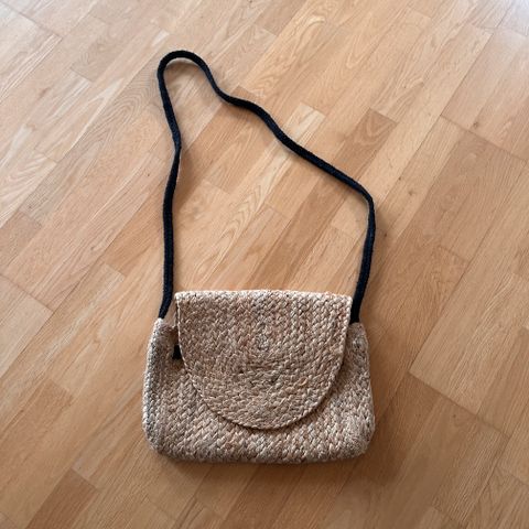 Mål: 30cm høy, 30cm bred (øverst på veska).