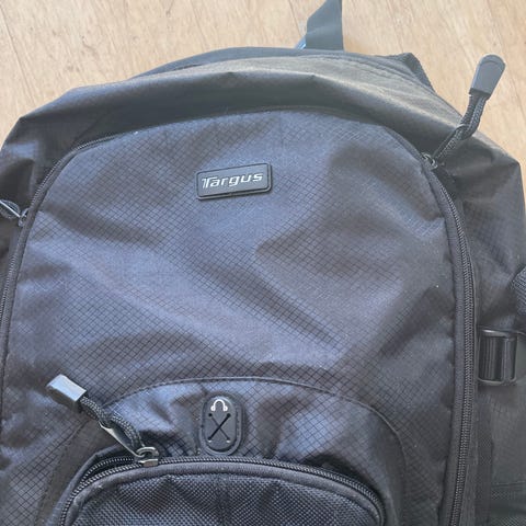 Nesten ny stor Targus Pc sekk / skolesekk. Sekken er ubrukt eller såvidt brukt en gan eller to. Sekken har mange ulike rom for oppbevaring. Denne sekken har også innebygget regntrekk som raskt kan dras over sekken fra er rom nederst. Pen sekk som er god på ryggen. Sekken er som ny.