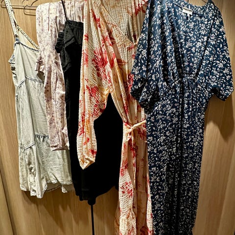 Selger en klespakke bestående av 4 fine kjoler til hverdag og fest for gravide. Kjolene er i veldig fin stand og svært lite brukt. Inneholdet i klespakken: