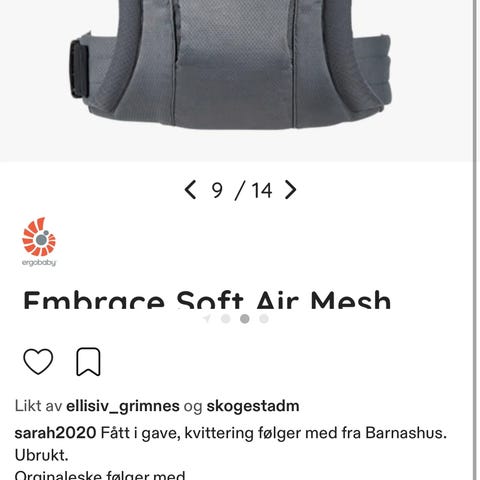 Baby bæresele = nesten ny, brukt 2/3 ganger
