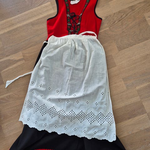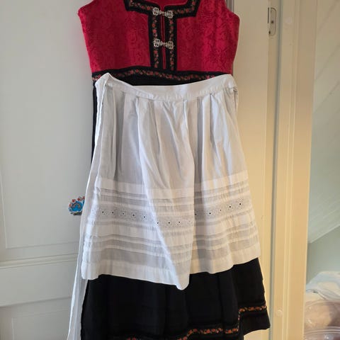 Hvitt forkle (med brodering), kan følge med for 100 kr )