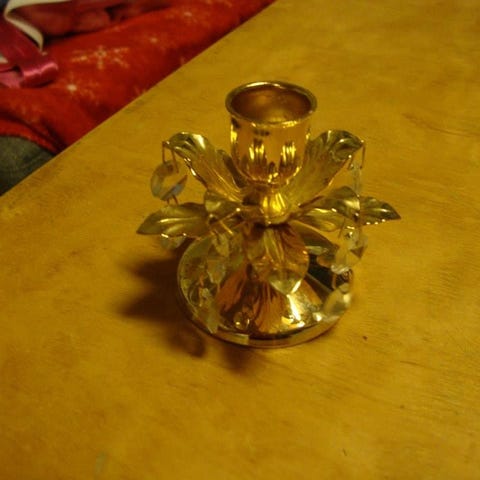 Gullbelagt lysestake med prismer,24 karat, håndlaget, stempel .