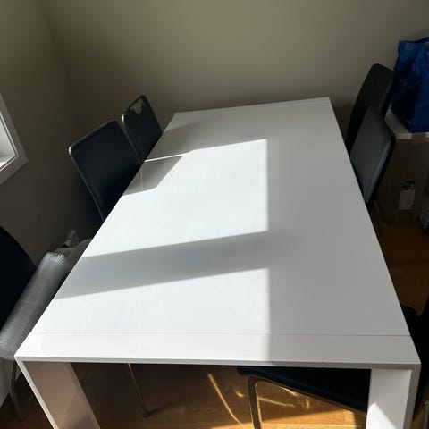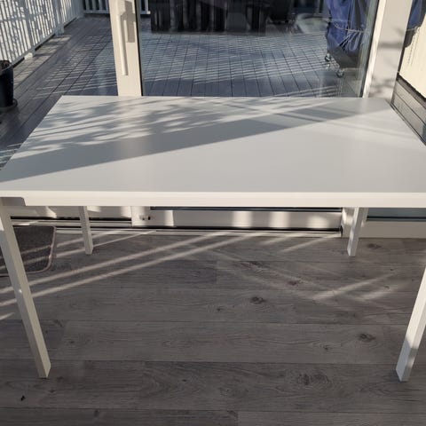 Godt ivaretatt IKEA Melltorp spisebord (som også fint kan brukes til skrivepult). Noen få mindre skrapemerker (se bilder). Lett å montere (4 skruer).