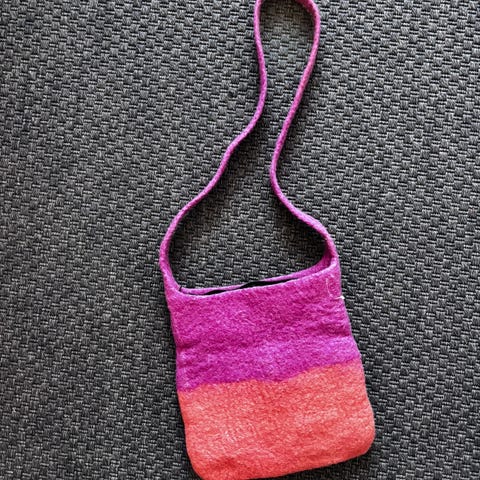 Liten ull veske. Lende 15 cm bredde 13 cm duvde 4 cm. Laget ull i model inka vev