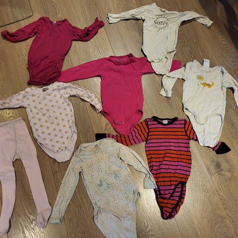 - 3 pyjamas: 2 med open fot. Eine (med kaniner) er str 74/80