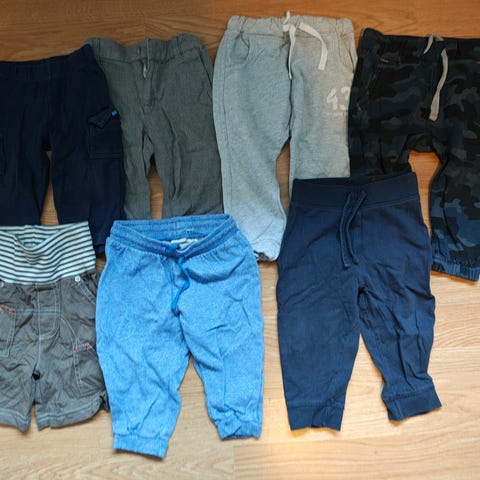 Bomullsbukser i str 68/74. Brukt av 1-2 barn, uten flekker eller hull😊