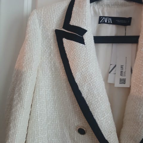 Ny blazer i mørke blå farge, har lommer, flere detaljer, splitt bakk str. M