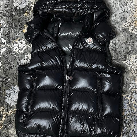 Moncler Tib Vest i rød. Vesten er i strl 0, som tilsvarer ca en XS. Noen av egenskapene til vesten er høy krage, logo på bryst, glidelås lommer og både glidelås og knapper lukkemekanisme. Tilstanden utmerket og er som ny.