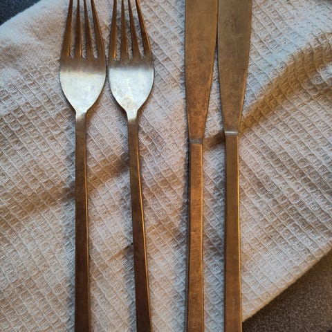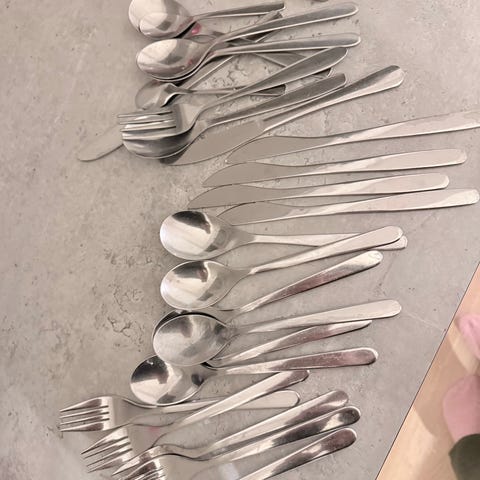 Den andre er 40,5 cm bred og 48,5 cm dyp og er kuttet av litt på siden for å passe i kjøkkenskuffen.