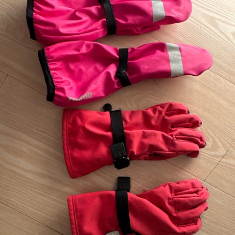 Reima regnvotter i grønn str 4 år. strikken på ene votten er litt ødelagt, men kan sys på.