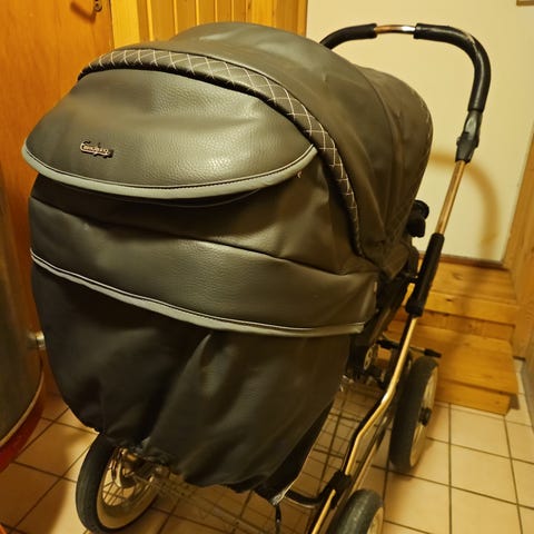 Brukt Emmaljunga barnevogn med bag, brukt primært som sovevogn i barnehage. Fotbrems fungerer ikke optimalt.
