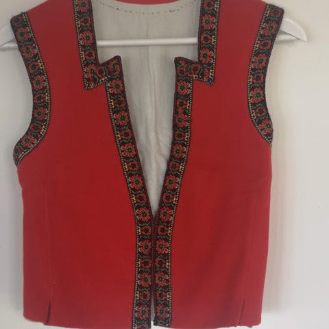 De 4 delene er helt ferdig montert, men de må syes sammen med bunadsskjorten.