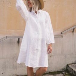 Ny hvit linkjole 🍀 Skjortekjole 🍀 Sommerkjole