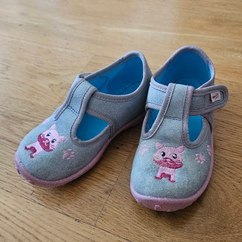 Grå tøfler med apekatt. Pent brukt av ett barn hjemme (ikke i barnehage). Ingen slitasje på sålen under, se bilde.