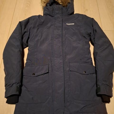Vinterparkas selges. Vasket med riktig vaskemiddel, men kan nok med fordel få litt impregnering. Noe bruksmerker, men hel og fin.