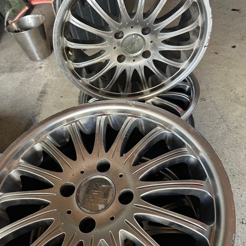 4 felger som aldri er blitt brukt usikker på alder stått i butikk på utstilling, 19 tommer.