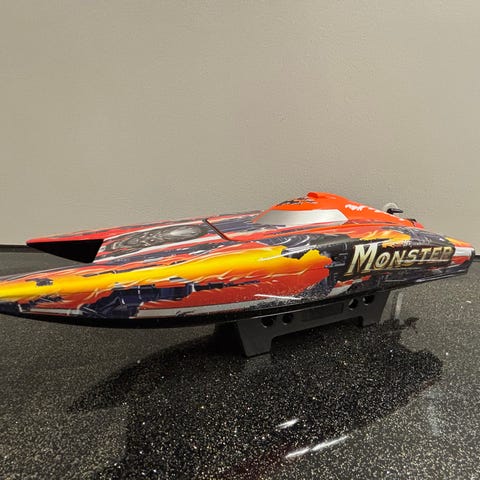 Selger en helt ubrukt RC båt av typen Joysway Bullet versjon 3 med børsteløs motor, radioutstyr og stativ i originaleske (har kun vært åpnet). Dette er en skikkelig flott båt med V-skrog og tøft fargeskjema som gjør seg like godt på vannet og hylla. Viktige reservedeler til drivlinjen slik som propell og ror medfølger også (se liste under).