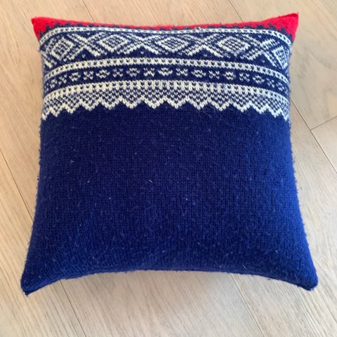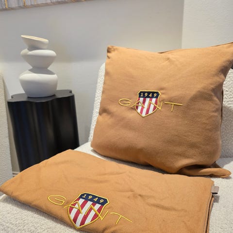 Tøff pute fra Gant. Strikket med flaggmotiv