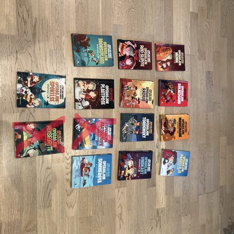 Har rundt 90 bøker, eg kan plukke ein mix til deg.