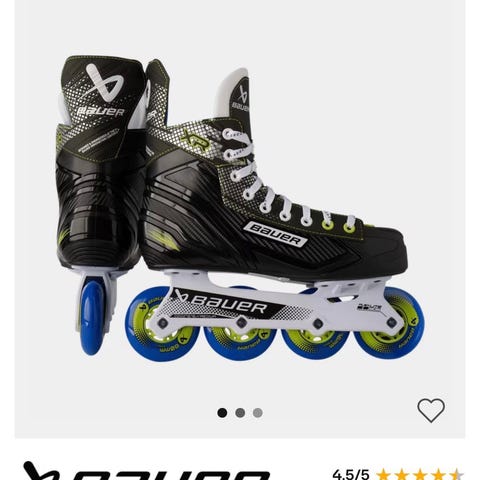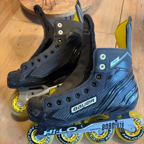 Kvalitet Roller Blades som kun har rullet max 3 km. Alle hjul er runde som nye, de ruller lett og stille slik som nye/ubrukte hjul. Selv bremsen er som ny. Utvendig er delt skinn og stoff, både snøring og borrelås. God og riktig støtte innvendig med god polstring slik kvaliteten til Bauer er.